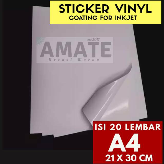 Kertas stiker vinyl photo isi 10 lembar a4.